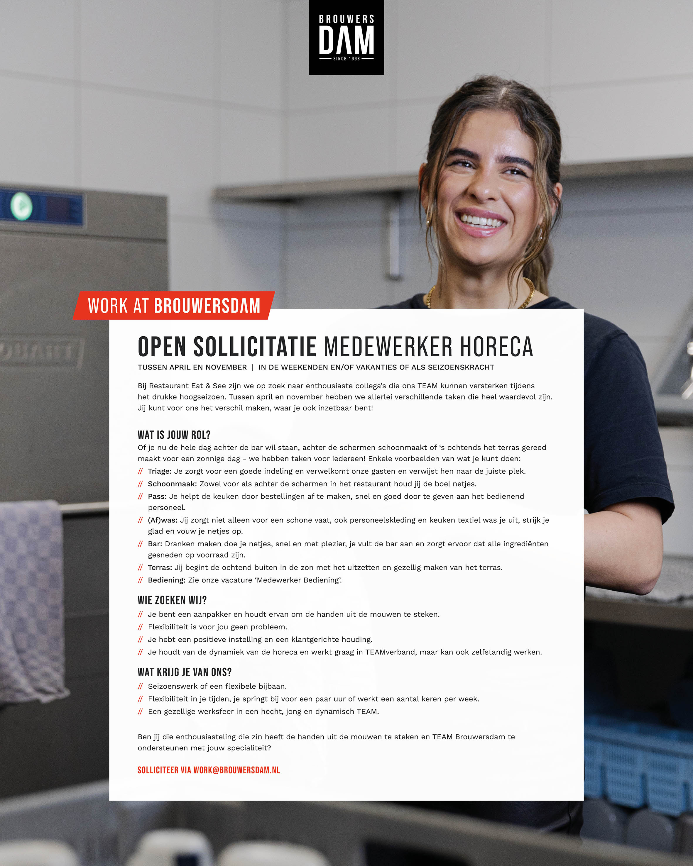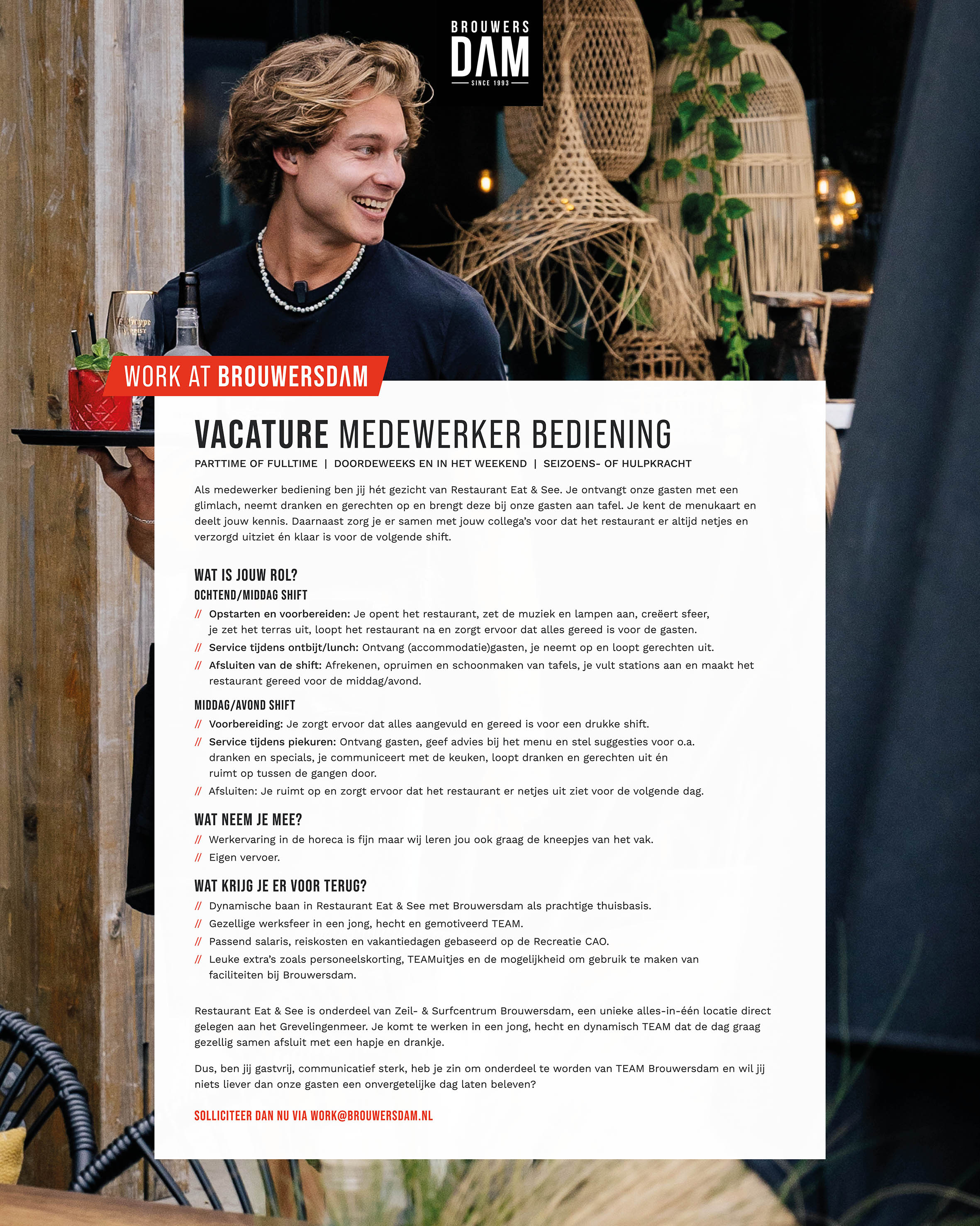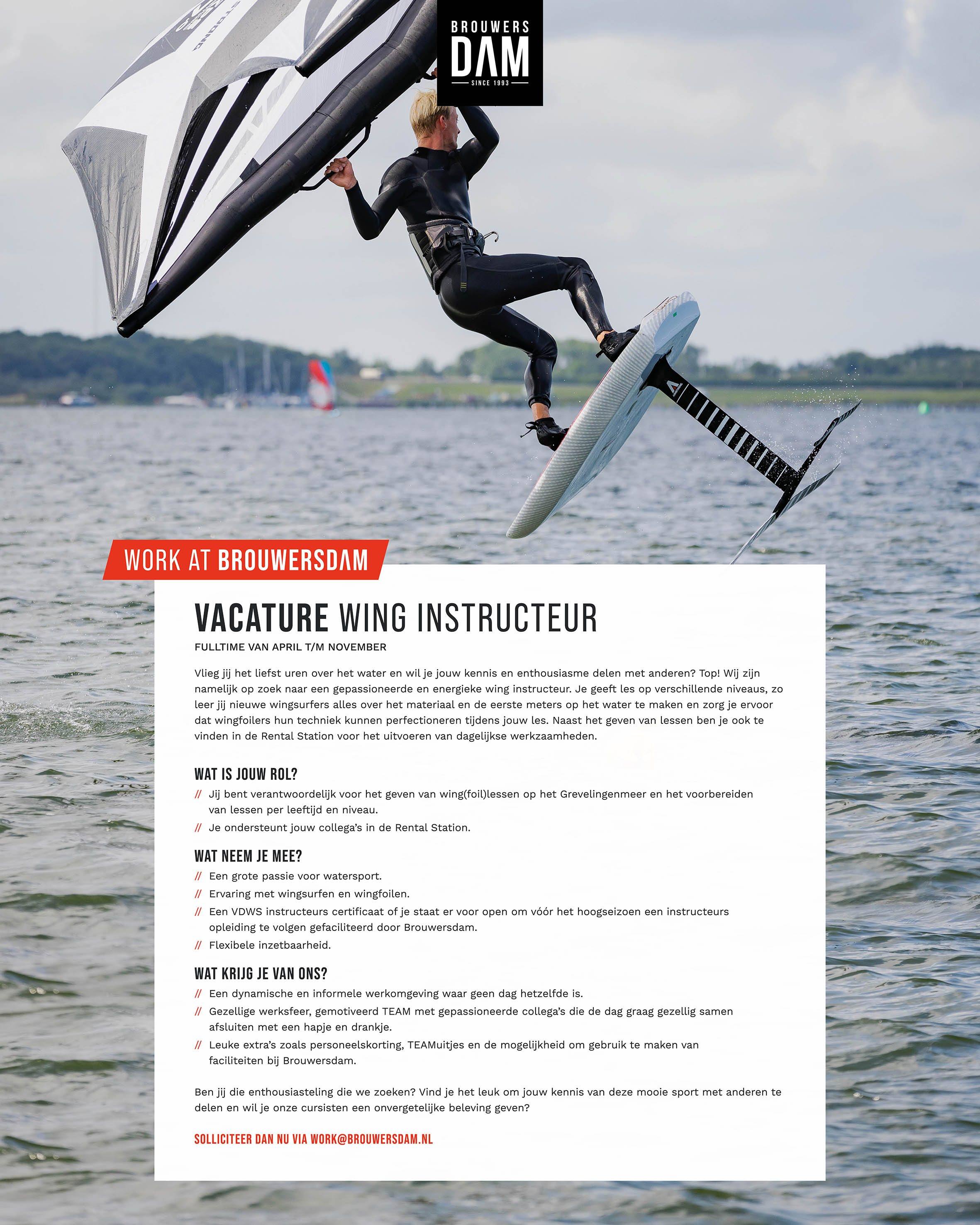 Voor diverse afdelingen binnen Zeil- & Surfcentrum Brouwersdam zijn wij op zoek naar nieuwe collega’s. Check onze vacatures of kom eens langs voor een gesprek!
