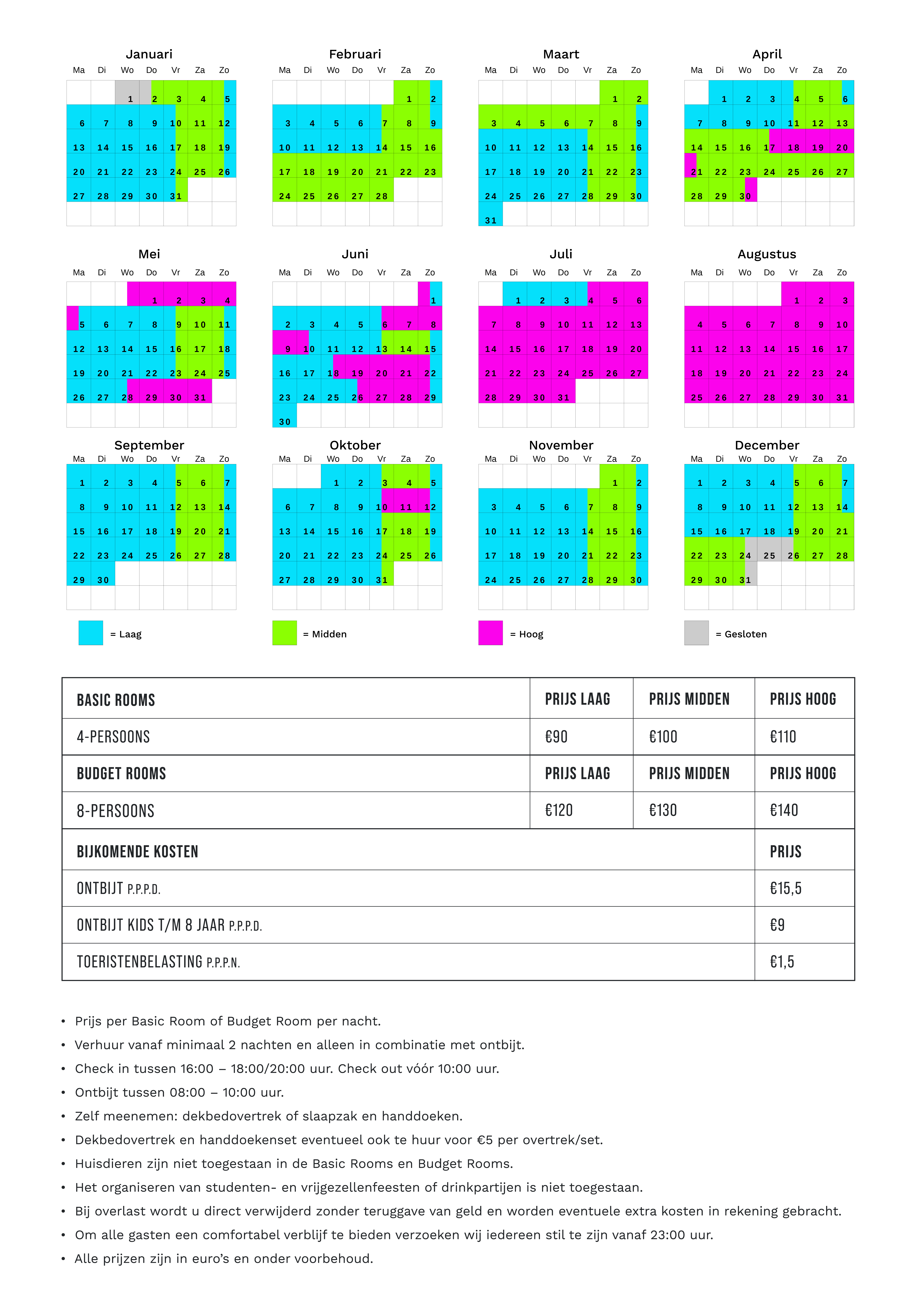 • • Voor alle boekingen in onze accommodaties gelden de Nederlandse RECRON-voorwaarden. Klik hier om deze in te zien.